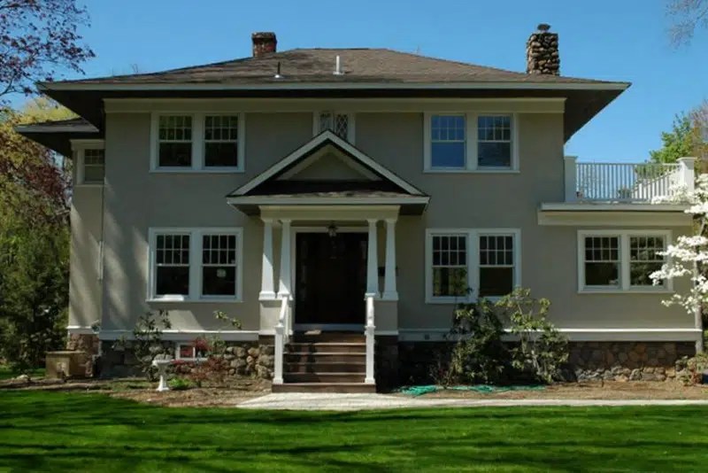 Typically, the foundations are constructed of rock, sloping outward as they get closer to the ground. This may imply that 10 or 12 (or even more) sections must be drawn for a big house plan. Exposed rafters, beams, or rafter ends are common.Early new england home designs, llc.